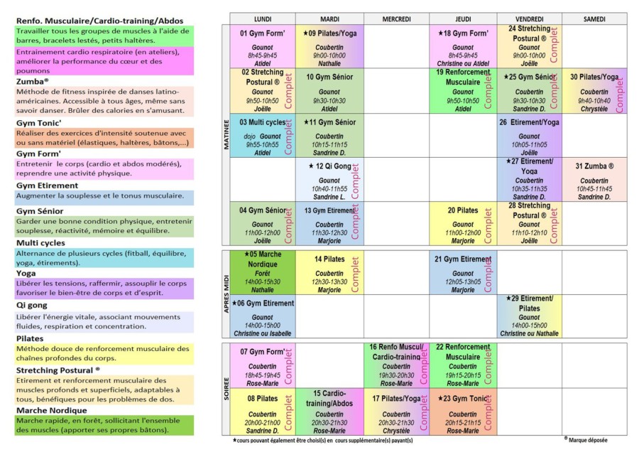 (cours supplémentaire(s) possible(s), identifié(s) par une étoile
